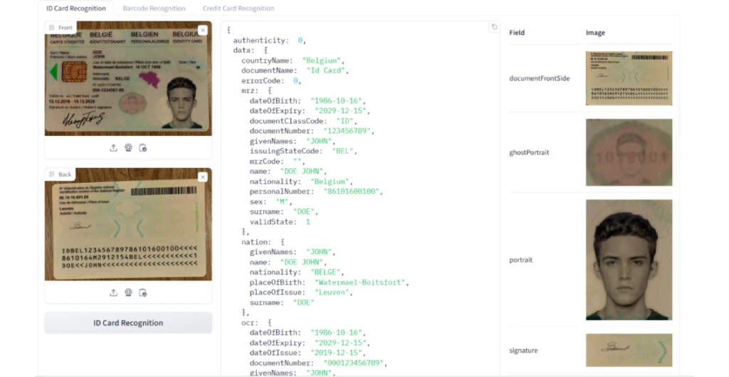 With Optical Character Recognition (OCR) you can extract data from validated documents and speed through client processing, our ID Document Recognition SDK supports all kinds of ID Card, Passport and Driver Licenses from 200+ countries and regions.